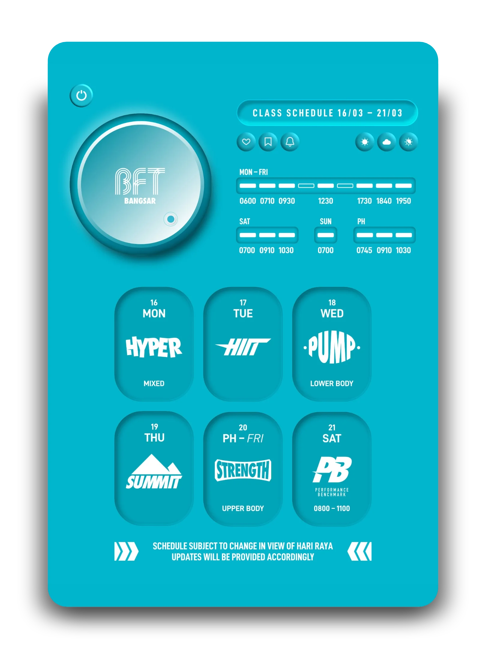 Get the BFT Booking app to see all class schedules.